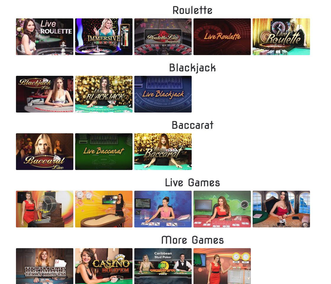 - Casino en direct : la section où sont proposés différents types de roulette, de blackjack et de baccarat avec un croupier en chair et en os. Les jeux de ces fournisseurs sont diffusés depuis les studios Dreamer iGaming et Microgaming.